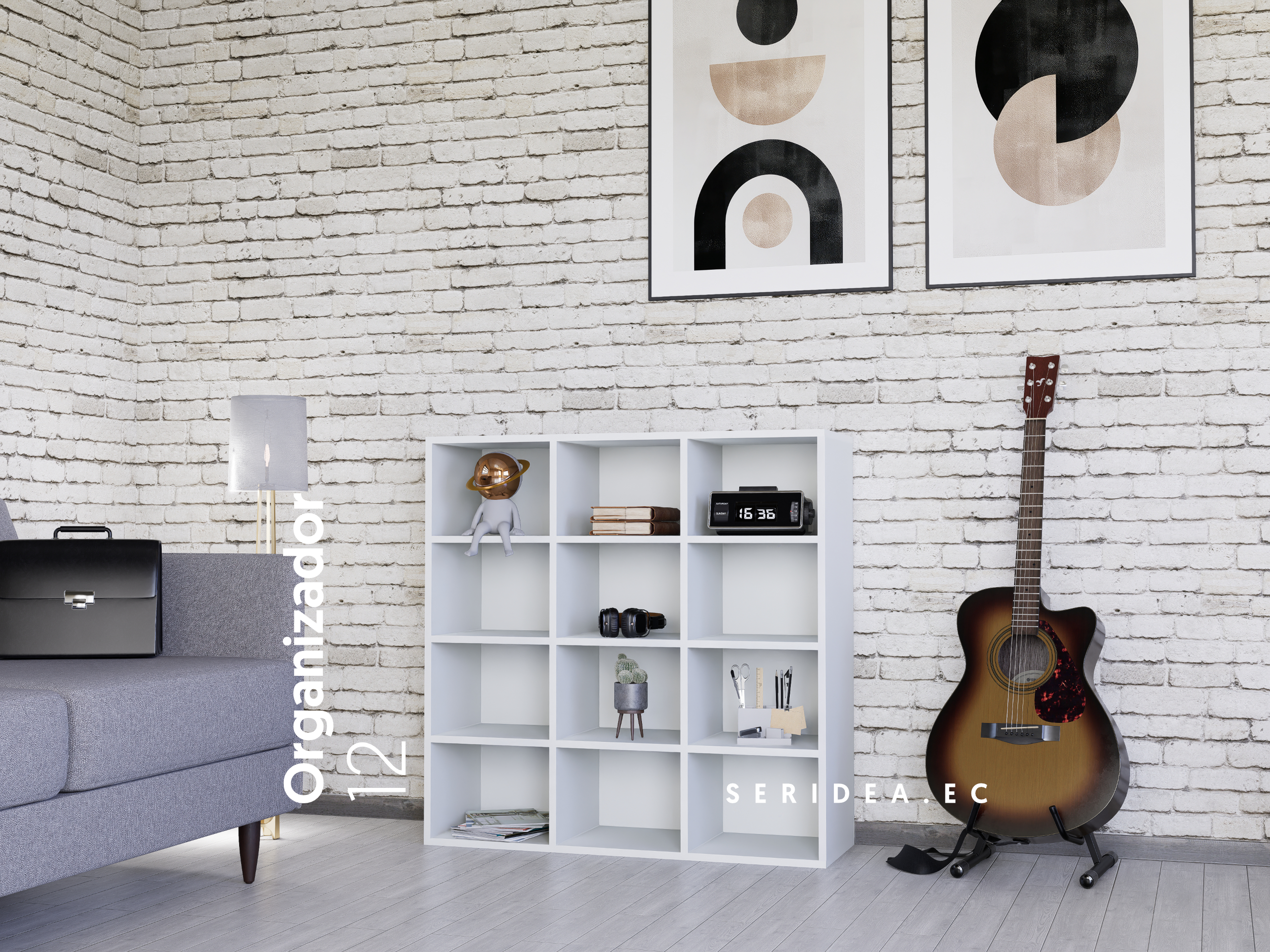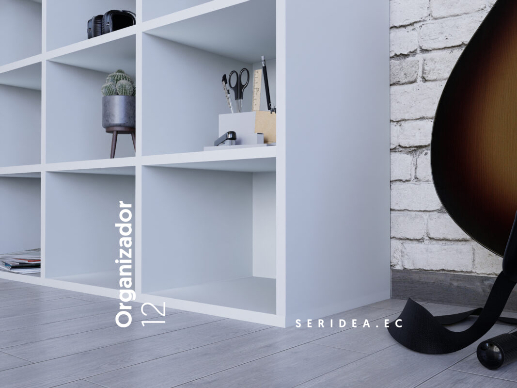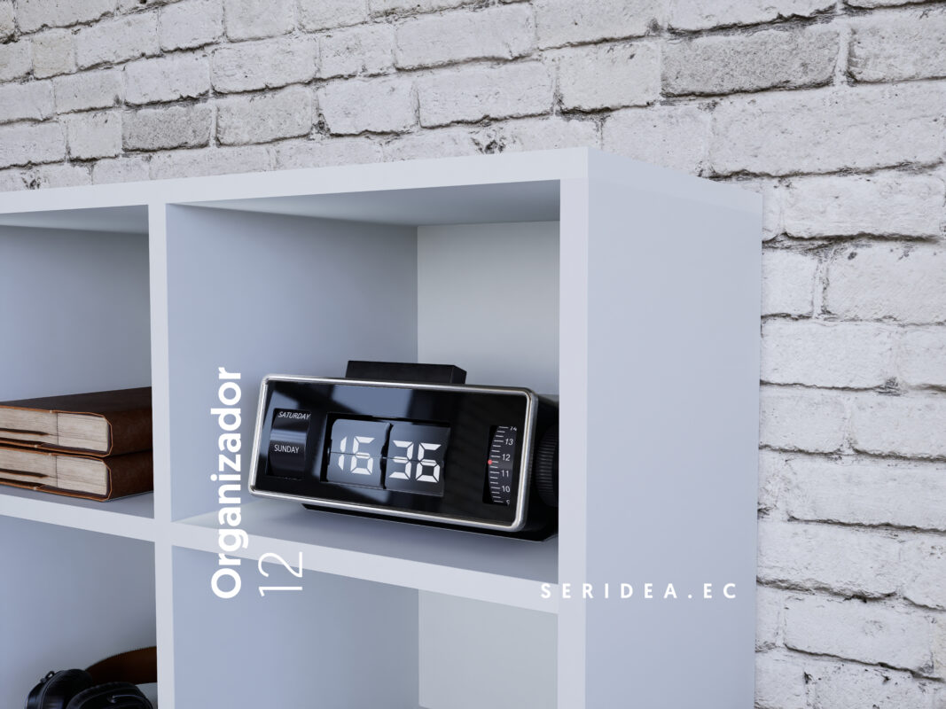 Un mueble diseñado para tener en orden tu espacio, mide 90cm x 90xm x 30xm hecho de 12 espacio perfectamente iguales para que tengas tus libros, adornos o accesorios en un mismo lugar.